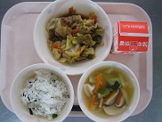 野菜と豚肉を味噌味で味付けたホイコウロウは、食べやすくて子どもたちも喜んで食べていました。野菜がたくさんとれる料理です。つるんとした食感の水餃子もおいしかったです![]()