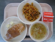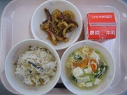 今日は4時間で学校が終わるため、子どもたちも配膳活動をスムーズに行っていたので、早めにいただきますができました。誰も残さず早く食べ終わりました