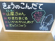 今日はごぼう、れんこんなど根菜類たっぷりのいりどりでした。ごぼうもれんこんも好き!と言う子がいて、嬉しくなりました。ちくわのチロリアン揚げは天ぷらの衣に粉チーズを混ぜてあります。ふんわり香ばしい味になります