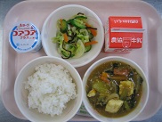 とうふのカレー煮はちょっと和風の味つけで、ごはんに合うおかずです。みんな残さず食べました