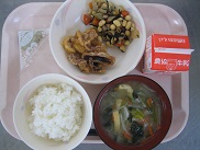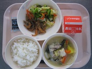 ガスエビは殻ごとバリバリ食べられるように揚げてあります。少しエビが苦手だと言っている子も残さず食べました。豚汁に使ったさつまいもはお向かいの門前高校の生徒が作ったものでした。とても甘いさつまいもでした![]()