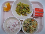 今日は甘酸っぱい味のすぶたとあっさり味のはるさめスープの組み合わせで、おいしかったです。すぶたは苦手な子が多いイメージの料理ですが、門前東小の子は、大好きだよ!と言っている1年生もいて誰も残す人はいませんでした
