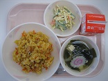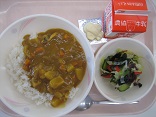 今日のカレーはシーフードでした。お肉のカレーの方が人気がありますが、たまにはシーフードのカレーもいいですね。海藻サラダの方もみんな残さず食べました
