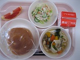 米粉パンはこどもたちの大好きなパンです。もちっとしていて美味しいです。やきそばやたまごスープもおかわりしていました。今日も全員残さず食べました