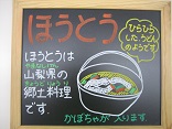 今日は山梨の郷土料理のほうとうを出しました。かぼちゃが入るのがポイントです。具だくさんでおいしかったです。久しぶりのグレープフルーツはあまりすっぱくも苦くもなく、食べやすかったようです