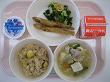 今日は親子煮がほっとする味で、おいしかったです。ちくわの天ぷらは今日は二種類の味で出しました。今日も全員残さず食べました。食欲の秋なのか、毎日おかわりする子もたくさんいます