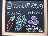 今日は「目の愛護デー」ということで、目によい果物ブルーベリーのお話を栄養教諭実習生にしてもらいました。保健室前にも目に関する掲示物があり、たくさんのこどもたちが触ってみていました