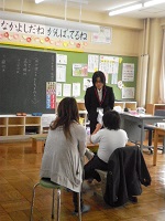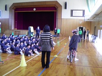4月27日、見守りボランティアの方々との対面式の後、ボランティアの方の協力をいただきながら、門前交番の方々を講師に交通安全教室が行われました。道路での安全な歩き方、安全な自転車の乗り方を中心に行いましたが、子供達は真剣に取り組んでいました。事故を防ぐためには、周囲の配慮も大切ですが、子供達自身がしっかりした判断・行動ができるようにしていかなくてはなりません。今後とも保護者の皆様方、地域の皆様方、ご協力の程宜しくお願いします。