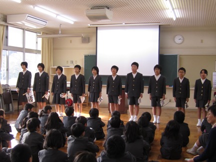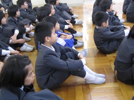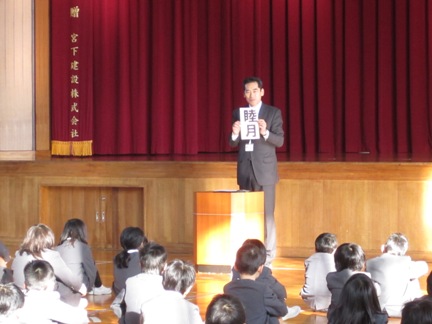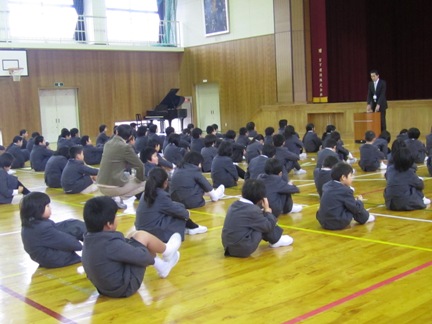 始業式では校長先生のお話を聞きました。