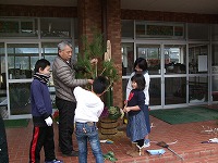 【4年生:たらの芽植栽】4年生は地域の方に教えていただき、たらの芽をプランターに植栽しました。