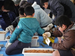 子どもたちは、「捨てるのかと思ったおがくずを再利用できるんだ!」、
