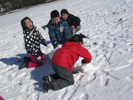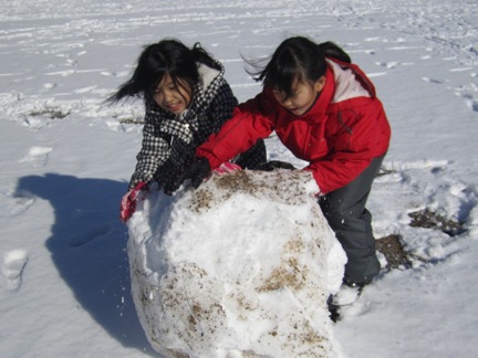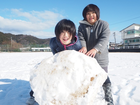 子どもたちは雪玉を転がす際に、