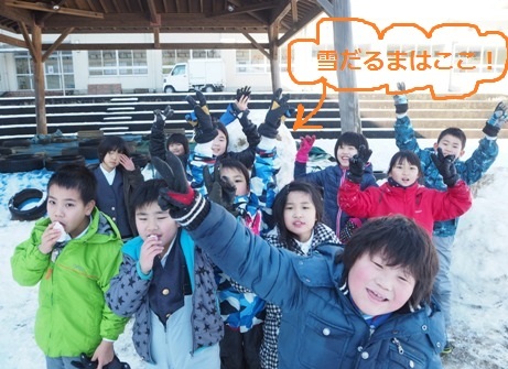 2限目に3年生の子どもたちが雪の積もる運動場で