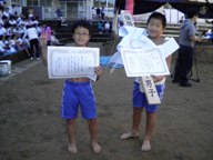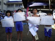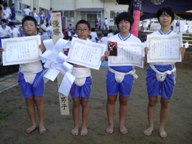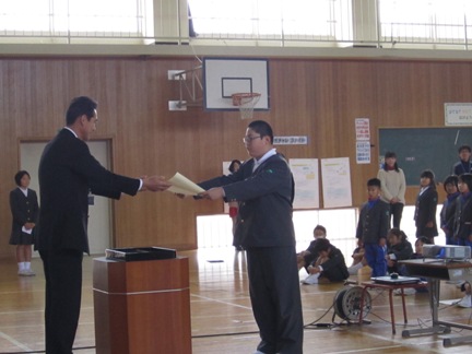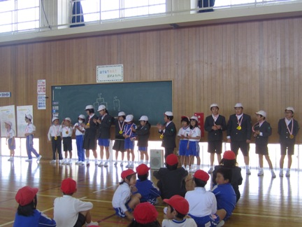 まず、1日に行われた相撲大会で3人抜きをした児童が表彰されました。
