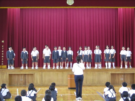 今月も元気に校歌&今月の歌を歌い、