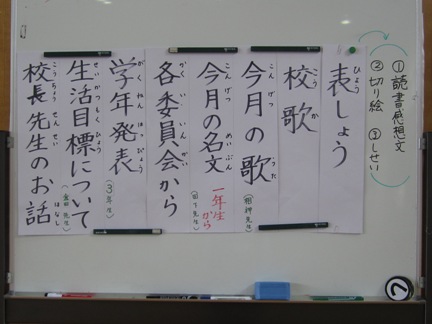 集会の流れの掲示があり、見通しを持って行うことができました。