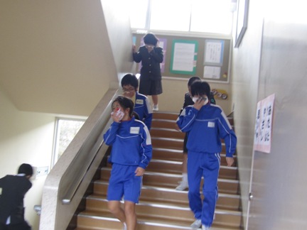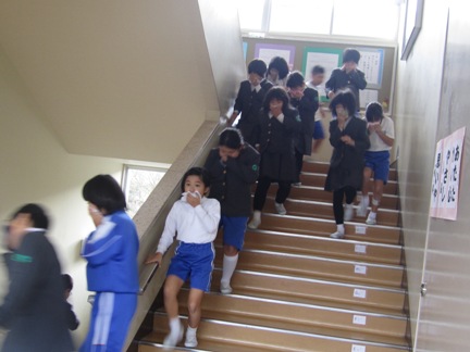 校舎の中は歩いて避難をします。