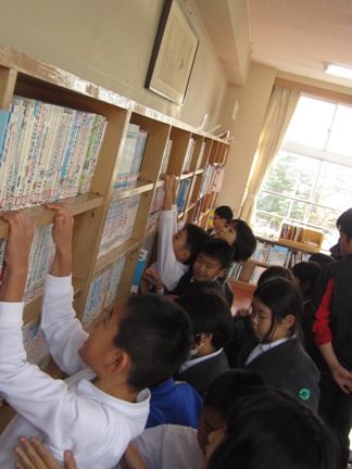 低学年は、本の題名をしっかり見て探していました。