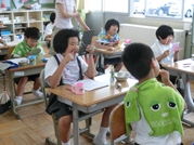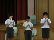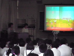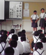 8月6日の全校登校日に,“平和を考えるお話し会”がありました。地域の読み聞かせボランティア「おはなしの森」さんからお二人の方がきてくださいました。