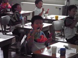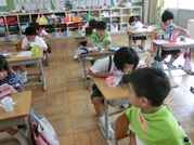 子どもたちは、『かわいそうなぞう』の読み聞かせや戦争があった時の学校の様子などについて、熱心に耳を傾けていました,
