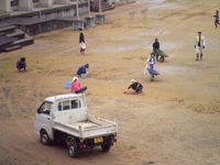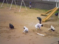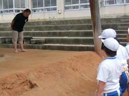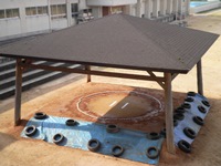 また今日18日には,相撲の指導して下さっている保護者の方や他の保護者の方々が土俵の修復をしに来てくださいました。先日1年ぶりにブルーシートがまくられた土俵でしたが,俵の一部がボロボロになっていました。それを今日,修復してくださってとっても立派な土俵になりました。
