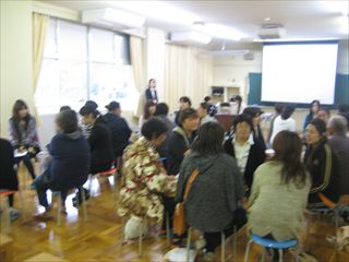 配付されたプレゼン資料で学習した後、グループに分かれ家庭での様子、困っていること、ルールについて意見交流をしました。