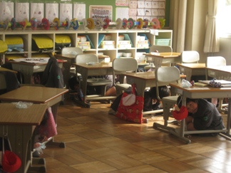 「安全行動をとりなさい」の指示で、しっかり行動!その後も、素早く運動場に避難しました。
