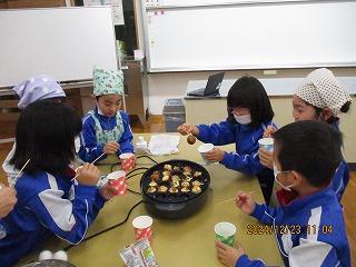自分たちの力で「たこ焼き」を作りました。出来上がるまでドキドキです。