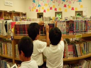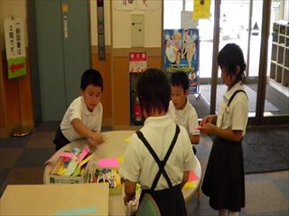 「本、読みたーい!」と行ったのですが、ちょうど、七夕かざりをつけているところでした。そこで、「おりがみ作りたい!」「一緒に飾りつけしたい!」ということになり、一層楽しく過ごしてきました。「まだ、いたい!」「まだ、作りたい!」「「上手って、ほめられた。」と、とても充実した時間でした。