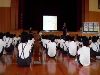 毎年、「離岸流」による悲しいニュースが流れます。そんなことが起こらないように、七尾海上保安庁から3名の方に来ていただき、「離岸流」についての学習をしました。