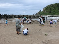 子どもたちも保護者もみんな黙々と海岸に落ちているゴミを拾いました。