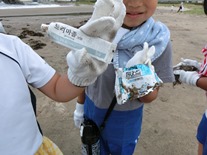 中には、日本語じゃないゴミも発見!!「海は他の国ともつながっている!」ことを実感。