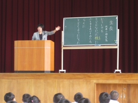 この詩を聞いた児童は「すぐに諦めるんじゃなくて、頑張ってやってみたいという気持ちになった」「何事にも挑戦していきたい」と2学期の決意を新たにしていました。