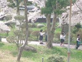 桜が地面を動く様子を表現した、かわいい言葉に思わず、ほんと!と思う先生とみんなだったようです。校長室から、観察する子ども達を見て、「くしひの森」に感謝でした。