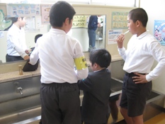 1年生もお兄さん・お姉さんを見ながら一生懸命みがいていました
