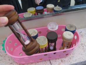 今週、壊れてきた砂時計を直して、新品の砂時計も仲間入りしました。