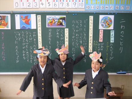 資料「二わのことり」に出てくる小鳥たちになって、それぞれの思いを話した1年生でした。