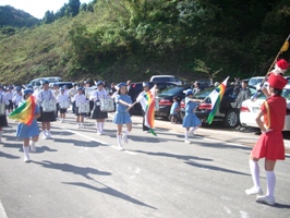 まがきトンネル(仮称)起工式での鼓笛隊演奏、大きくなっても、「ぼくたち、わたしたちは、トンネル起工式で演奏したなあ」って、いつまでも思い出に残るでしょうね。