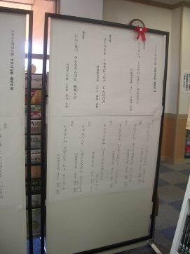 門前図書館で、門前川柳の優秀作品が展示されていました。