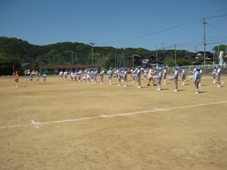 晴天の下、紅組と白組の行進から、運動会が始まりました。元気な行進に大きな拍手をありがとうございました。