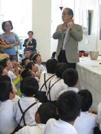 小田原 毅先生に、作品の解説をしていただき、子ども達は、作品のすばらしさ、美しさに心が動いたようです。人が心をいれてつくられた作品を目にし、その作品のパワーを自分なりに感じる、そんなよい時間をすごしたことと思います。本物を見るって、すばらしいですね。