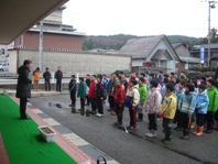 スキー体験学習 出発式 今日と明日の2日間、4・5・6年生がスキー体験学習に行きます。