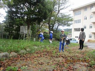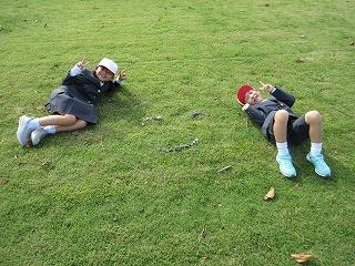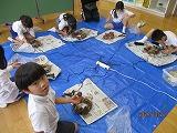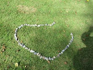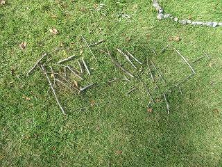 自然物を利用して芝生の上に絵を描いたよ。