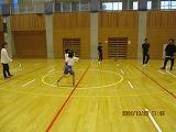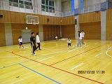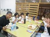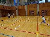 親子ドッチビーで汗を流し、給食試食会でお母さんお父さんと一緒に給食を食べました。