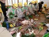 植樹体験のあとは、あての葉や秋の植物を使った「スワッグ」を制作しました。