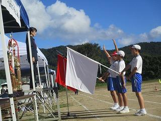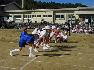 爽やかな秋空の下、「心を一つに 全力で元気よく楽しもう!」のスローガンのもとに、子どもたちは、多くの保護者及び地域の方々に見守られて、最後まで全力で頑張り抜くことができました。