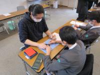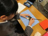 6年生が、輪島漆芸美術館に行って、卒業制作の「輪島塗沈金パネルづくり」をしました。事前に考えた下絵をもとに削り、沈金体験をしました。はじめは、うまく削ることができなかった児童も、指導者の方に教えてもらいながら、上手に作品を仕上げていました。完成したパネルは、来年の1月~2月に漆芸美術館に飾られます。卒業式にも飾る予定です。