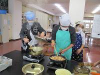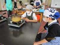 5・6年生が家庭科の学習で調理実習をしました。5年生はご飯とお味噌汁を、6年生は主菜と副菜を作りました。6年生が、5年生の包丁使いを「上手」とほめたり、「今年のご飯おいしく炊けている」と話したりしていました。温かい言葉がたくさん聞こえ、笑顔いっぱい、おなかいっぱいの調理実習となりました。どの班もとても上手にできました。