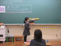 算数で、「何番目について」考えました。子どもたちはブロック操作で問題の意味を確認した後に、図や式を考えました。友達に上手に説明したり、姿勢よく聞いたりする姿が素敵でした。