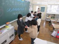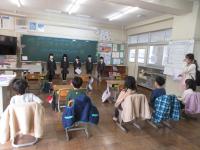 2月24日(金)、1年生がくしひ保育所の年長さんを招いて「なかよし集会」を開きました。招待した年長さんは,1年生と同じ,5人です。学校紹介や「だるまさんの1日」をして楽しみました。そして最後に、1年生が心を込めて準備したプレゼントを渡しました。それは,1年生が育てたあさがおの種です。可愛らしくデコレーションした封筒に入れて贈りました。まつぐみさんの楽しそうな顔を見て、1年生も嬉しそうでした。全員で頑張って成功させた喜びは、必ず次に繋がると思います。これからも5人協力して頑張りましょう!そして、まつぐみの皆さん、今日はありがとうございました。次は、4月に会いましょう!